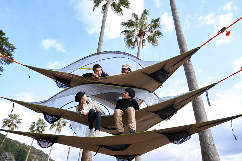 從四棟如同漂浮在海上的宇宙飛船般閃閃發光的「圓頂帳篷」中望向大海,彷彿讓人忘記這裡是日本。
